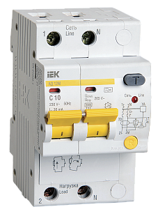 Автоматический выключатель дифф.тока MD06 2р C10 30 мА электрон. тип А ELVERT