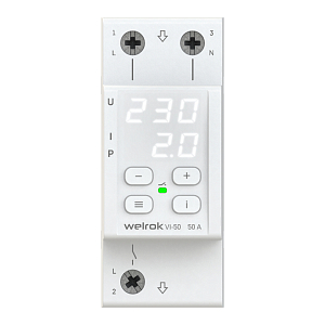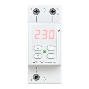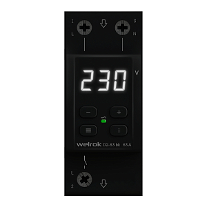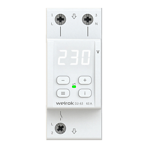 Реле напряжения Welrok D2 защищает оборудование от скачков и провалов напряжения, обрыва нулевого провода. Реле отключает нагрузку, если сетевое напряжение выходит за установленные пределы. Когда значение напряжения вернется в норму, нагрузка будет автоматически включена обратно. Гарантия 10 лет На все реле напряжения Welrok действует 10-летняя гарантия от производителя. Максимальная функциональность Welrok D2 — компактное реле на 2 модуля с мощным функционалом: - Скорость срабатывания реле < 0,03 сек. - TrueRMS для точного измерения напряжения Для уменьшения количества срабатываний: - Защита от частых срабатываний - Регулируемый гистерезис - Регулируемая задержка включения нагрузки - Профессиональная модель отключения при выходе напряжения за пределы Для анализа питающей сети по характеру аварийных срабатываний: - Журнал срабатываний на 100 значений Для комфортной и безопасной эксплуатации: - Поправка напряжения на экране - Регулировка яркости экрана - Защита от перегрева