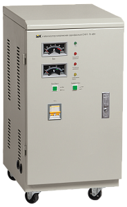 Стабилизаторы напряжения электромеханического типа торговой марки IEK предназначены для поддержания стабильного однофазного/трехфазного напряжения питания нагрузок бытового и промышленного назначения 220 B/3x220 В, 50 Гц при отклонениях сетевого напряжения в широких пределах по значению и длительности. Применяются для стабилизации напряжения при работе с высокочувствительной техникой на промышленных объектах, в медицинских организациях, телекоммуникационных компаниях, в малоэтажном жилищном строительстве, в жилищно-коммунальном хозяйстве. Позволяют продлить срок эксплуатации систем освещения, компьютерного оборудования и др. Соответствуют стандартам ГОСТ Р 52161.1, ГОСТ Р 30805.14.1, ГОСТ Р 51317.3.2, ГОСТ Р 51318.14.1, ГОСТ Р 51318.14.2. Стабилизаторы напряжения электромеханического типа серии СНИ представлены в ассортименте самым широким диапазоном мощностей (от 0,5 до 150 кВА), при этом по типу питающей сети модельный ряд представлен как однофазными стабилизаторами (серия СНИ1), так и трехфазными (серияФизические параметры (вес, габариты) СНИ3-20 кВА